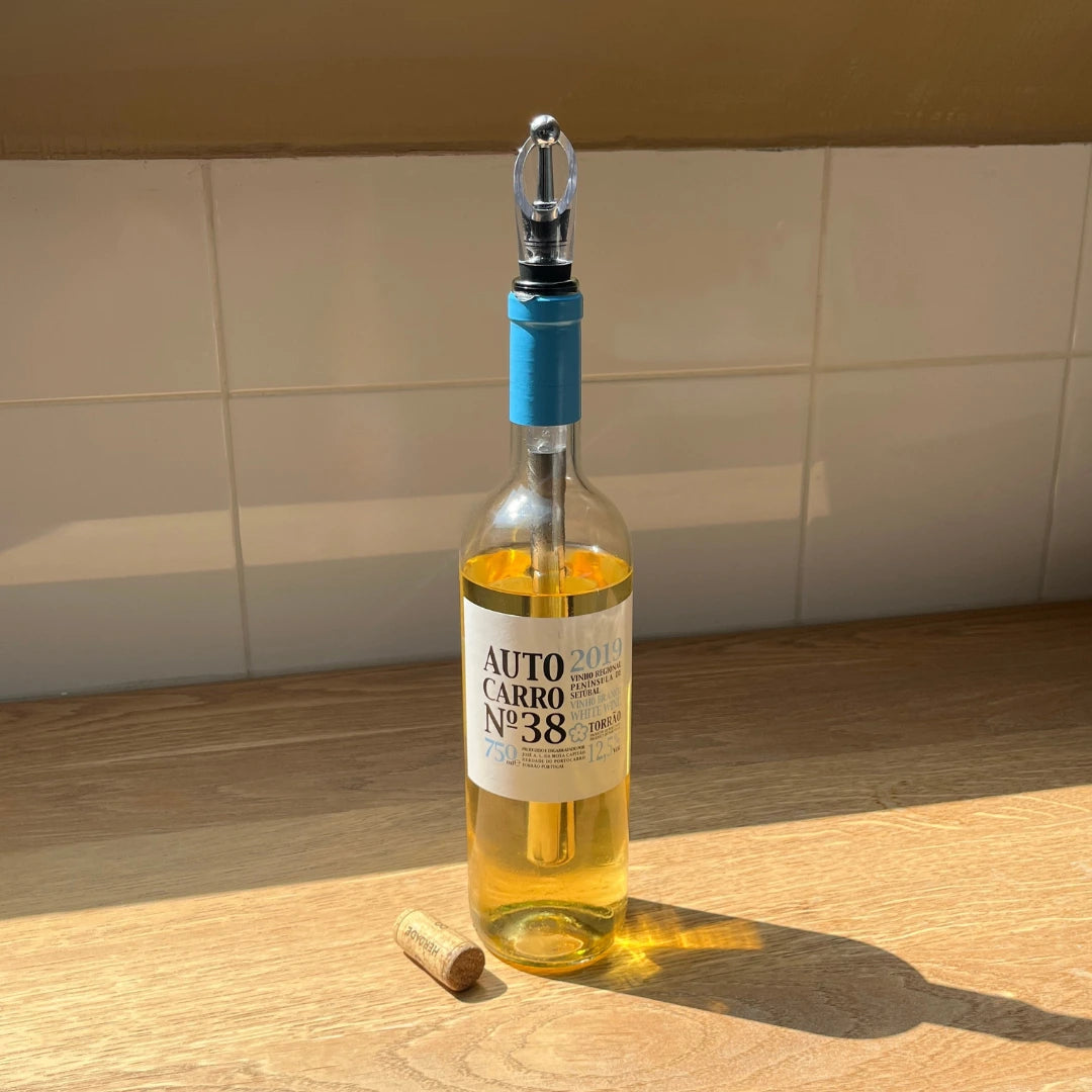 Keep your wine perfectly chilled with this clever 3-in-1 tool that cools from the inside, gently aerates as you pour, and prevents drips with its built-in spout and stopper